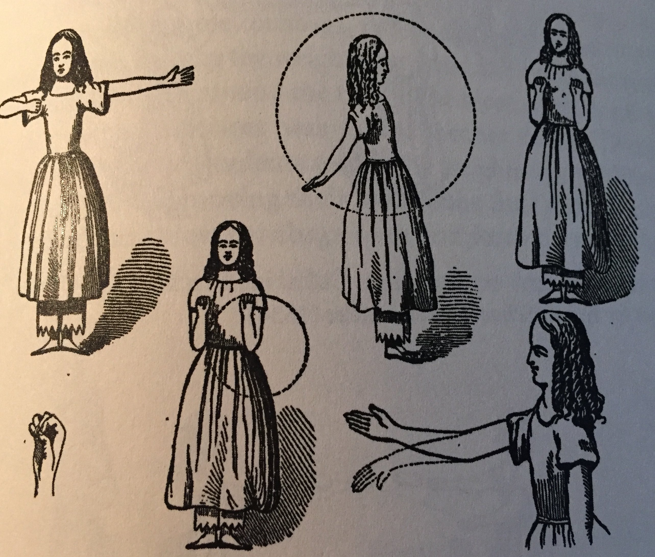Right: Upper extremity exercises from Catherine Beecher's Calisthenics Exercises for Home, Schools and Families, 1856