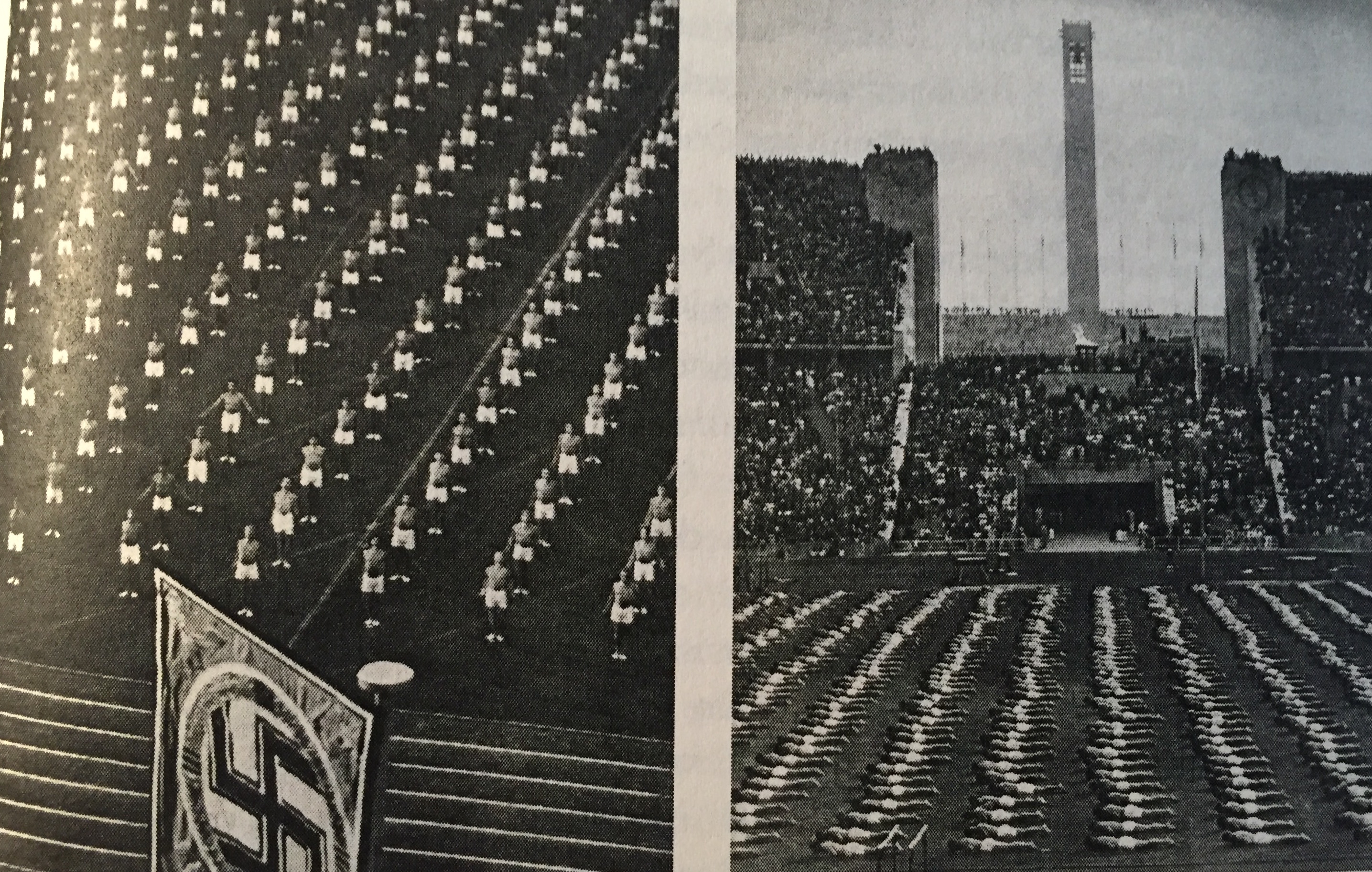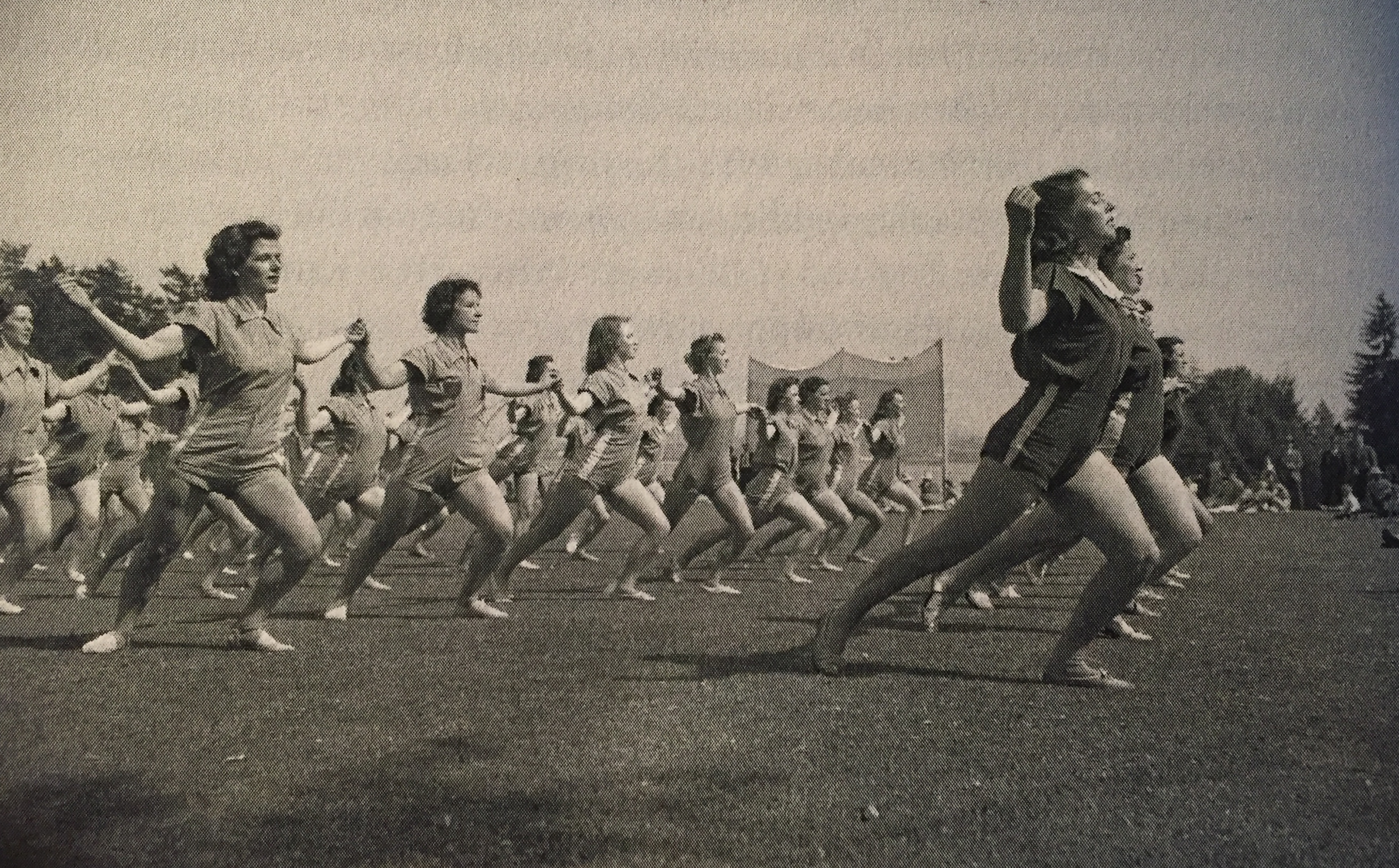 A mass demonstration of men and women from the Turner Gymanstic movement held on the eve of the 1936 Olympic Games in Britain. From Strong, Beautiful and Modern: National Fitness in Britain, New Zealand, Australia, and Canada, 1935-1960 by Charlotte MacDonald