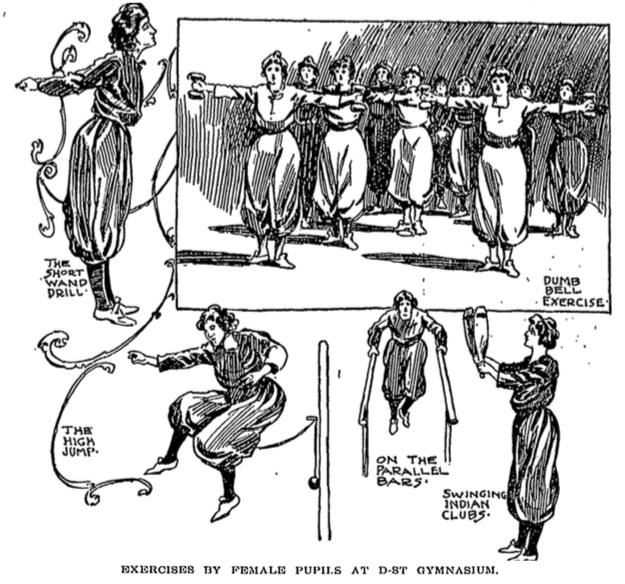 “Exercise by female pupils at D-St Gymnasium", Boston Daily Globe April 8, 1902.