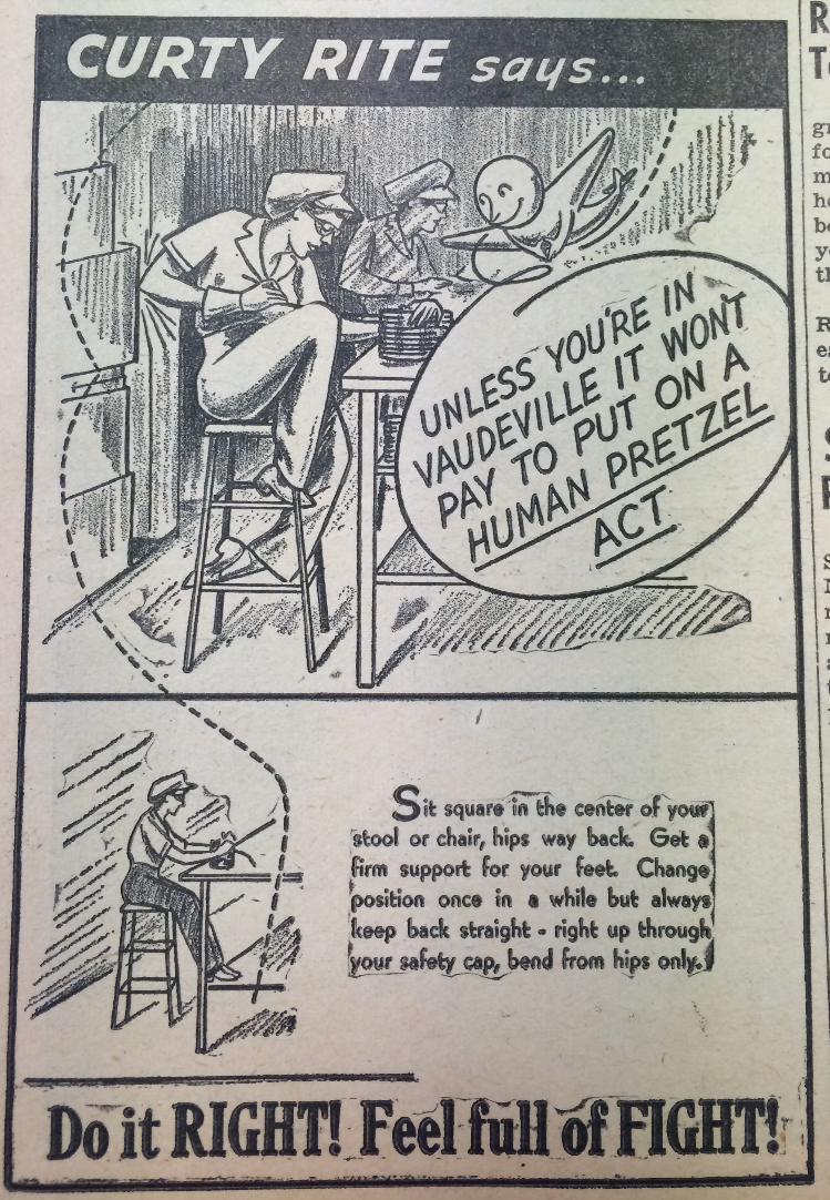 A safety bulletin from the Curtiss Wright company magazine. From the New York State Archives, Office of Physical Fitness Director's files.